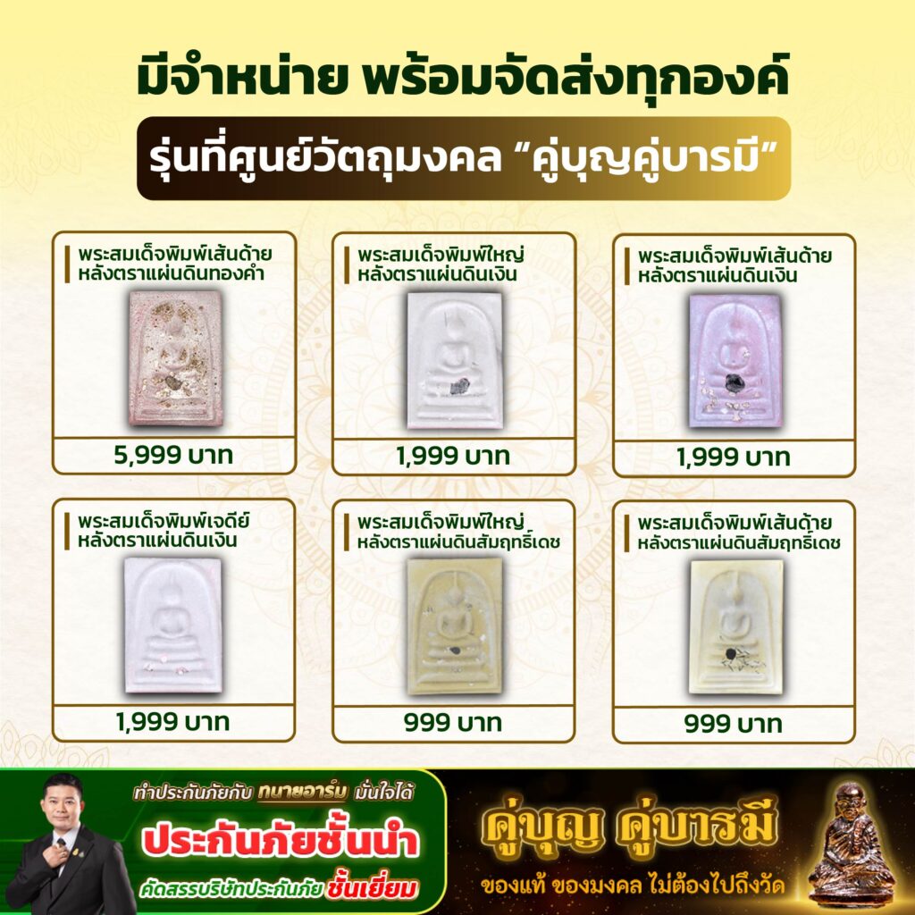 พระสมเด็จพญายมราชรุ่นนี้ไม่ได้เป็นเพียงพระสมเด็จที่มีรูปทรงสวยงาม แต่ยังสะท้อนถึงการสร้างบุญเพื่อชุมชนและศรัทธาของผู้จัดสร้างอย่างชัดเจน ผู้ที่กำลังมองหา พระสมเด็จ เพื่อเสริมดวงด้านการงาน ความยุติธรรม และการเลื่อนยศ สามารถเลือกจากรุ่นต่าง ๆ ตามระดับงบประมาณและความตั้งใจบูชาได้ทันที พร้อมส่งทุกองค์ที่ศูนย์ฯ สนใจเช่าบูชา หรือสอบถามเพิ่มเติมได้ทาง 📩 Line: @arm123456789