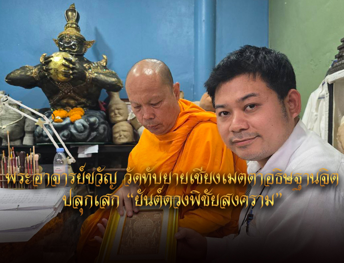 พระอาจารย์ขวัญ วัดทับยายเชียงเมตตาอธิษฐานจิตปลุกเสก “ยันต์ดวงพิชัยสงคราม”