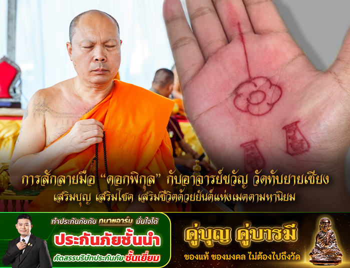 การสักลายมือ “ดอกพิกุล” กับอาจารย์ขวัญ วัดทับยายเชียง เสริมบุญ เสริมโชค เสริมชีวิตด้วยยันต์แห่งเมตตามหานิยม